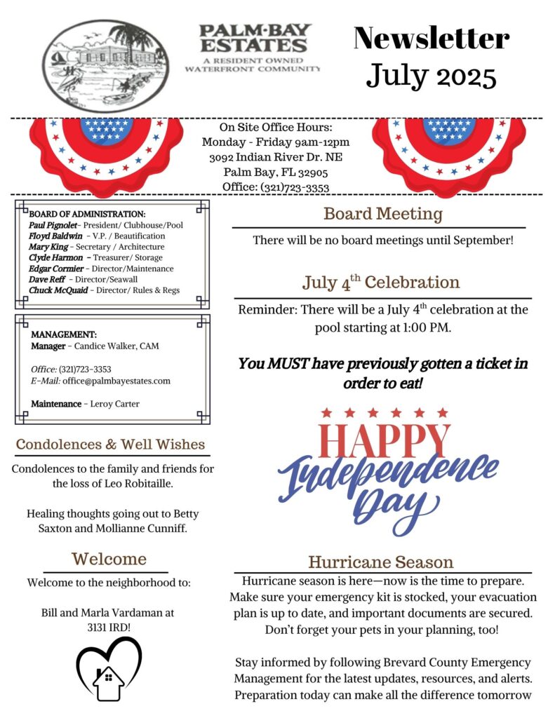 July 2025 Newsletter & Calendar